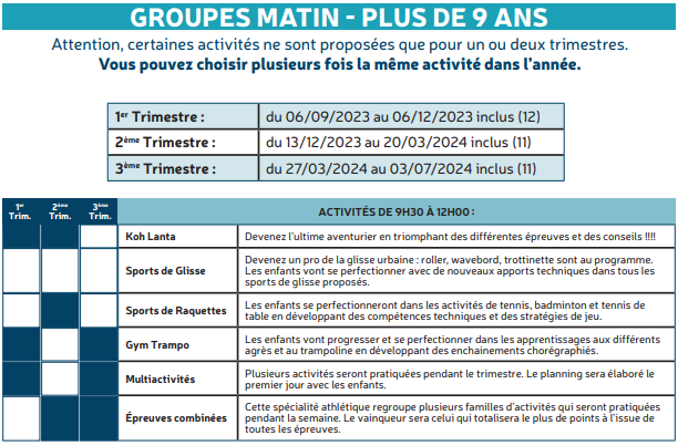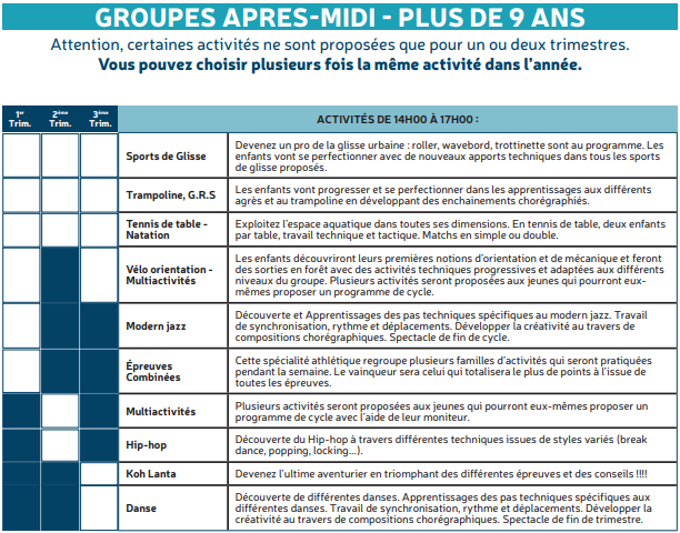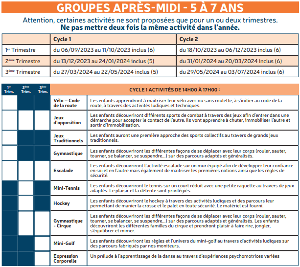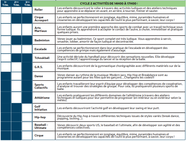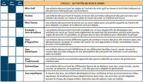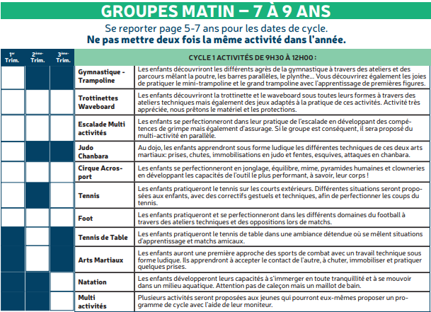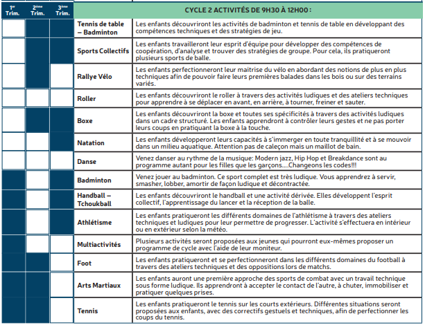 Les mercredis – Programme d’activités